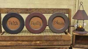 Primitive Wooden Faith Family Friends Berry VIne Plates Set of 3