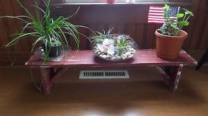 PLANT BENCH IN BARN RED 32"X12"X10" DISPLAY INSIDE OR OUTSIDE