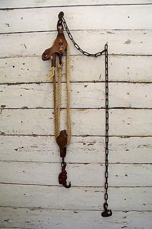 Antique / Old Vintage Rope Pulley / Barbed Wire Fence Stretching Tool Barn Decor