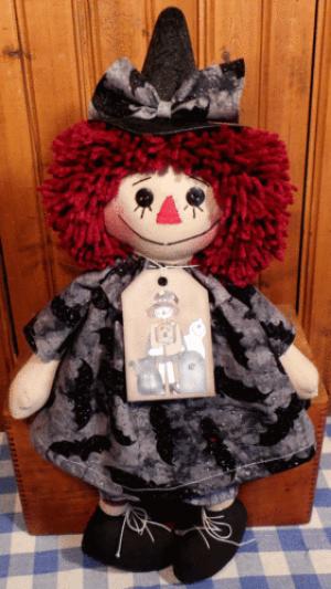 Handmade Primitive Button Eye Raggedy ANN WITCH Doll in HALLOWEEN BAT Dress