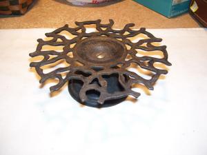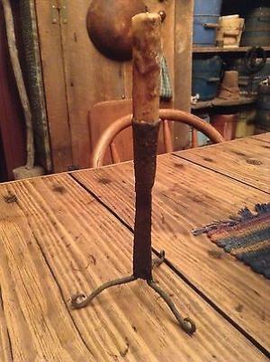 Early style forged iron taper candle holder primitive curled feet