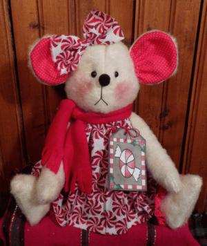 Handcrafted Primitive CHUBBY CHRISTMAS POLAR BEAR Doll in PEPPERMINT CANDY Dress