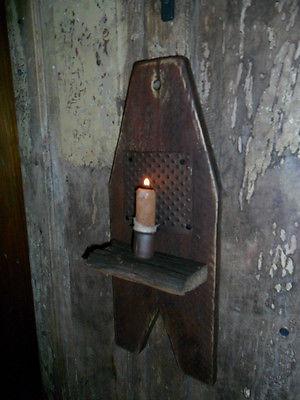Primitive Candle Light Boot Jack, Rustic Wall Rack w/ Reflector, Homestead