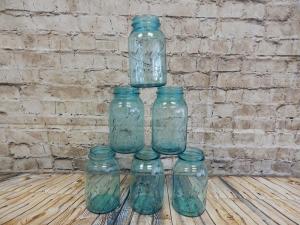 6 Antique Blue Glass Ball Mason Quart Fruit Jars Vintage Farm Decor Crafts 3055