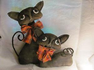Primitive Halloween Black Cat Duo ``Shelf Sitters Kitties``