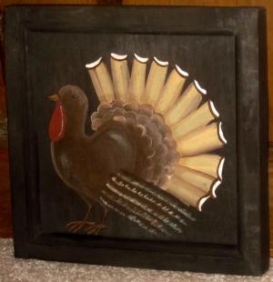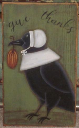 *~*PRIMITIVE*~* HP FOLK ART PRIM CROW *~* PILGRIM *~* GIVE THANKS *~* BOARD
