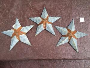 Set of 3) 12" PUNCHED RUSTY GALVANIZED BARN STARS PRIMITIVE COUNTRY RUSTIC