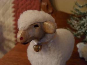 ANTIQUE GERMAN STYLE~ WOOLY SHEEP or LAMB~EXTRA LARGE~FLEECE & PAINTED WOOD