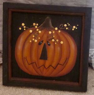 *~*PRIMITIVE*~* HP FOLK ART CROW * JACK-O-LANTERN * HALLOWEEN *~* OLD FAN BLADE