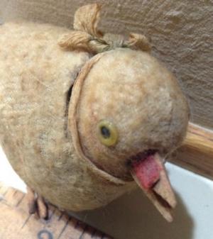 Antique Primitive Folk Art Chick With Wooden Beak