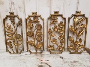 4 Vintage Aluminium Sexton Ornamental Wall Pieces ~ Old Primitive Flowers Decor