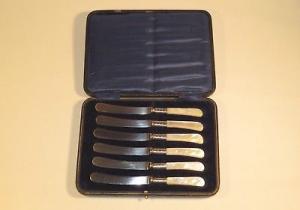 NICE 19TH CENTURY SET OF 6 KNIVES WITH PEARL AND SILVER HANDLES