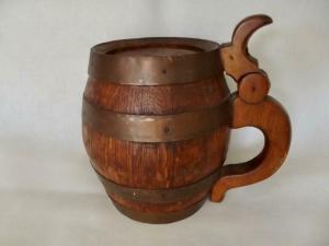 Antique Bar Chic French 2L Oak Wood Wine Barrel Copper Bands 8" German Beer Mug?