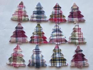 12 VTG CUTTER QUILT CHRISTMAS TREES APPLIQUES BRIGHT PLAIDS