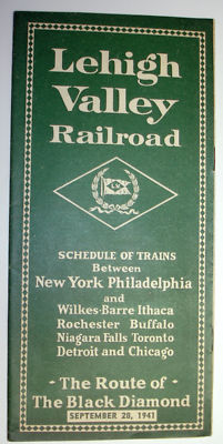 SEPT 28, 1941 LEHIGH VALLEY RAILROAD TIMETABLE