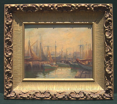 Vintage Oil on Canvas Board Painting of Rockport Harbor Listed artist Rosenthal