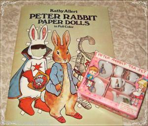 VTG Childs PETER RABBIT Ceramic Tea Set & Paper Dolls!