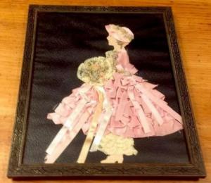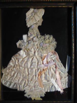 ANTIQUE VINTAGE 1920s FRAMED PAPER DOLL RIBBON DOLL SILHOUETTE PICTURE FRAME