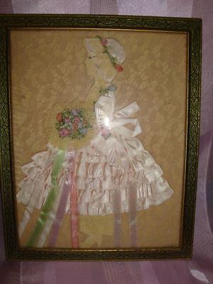 GORGEOUS VINTAGE PAPER DOLL RIBBON GIRL with FRAME