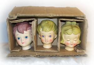 Vtg Set 1950s Pixie Doll 3 Heads Papier Paper Mache Set 3 Composition Japan Box