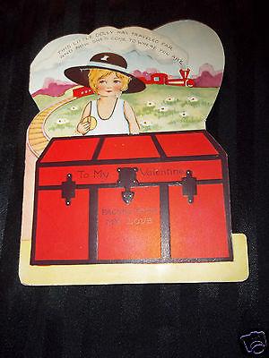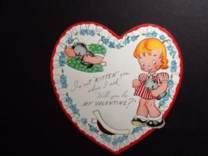 Vintage Paper Doll Unused Valentine Card Heart Shaped Girl With Kitten OLD Mint