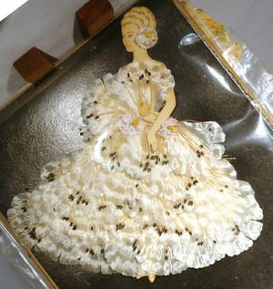 Antique Paper Doll with Satin Dress, Glass Beads, 9" x 10", Awesome Piece