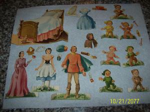 1930's-40's SNOW WHITE & 7 DWARFS SMALL STAND UP PAPER DOLLS CUTE SET