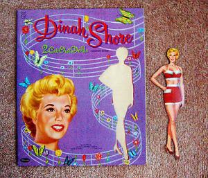 VINTAGE ORIGINAL 1954 PAPER DOLL BOOK OF DINAH SHORE DOLLS PUNCHED, 1 PAGE CUT