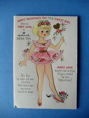 Vintage HALLMARK Paper Doll Greeting Card MARY JANE Sweet Girl VALENTINE