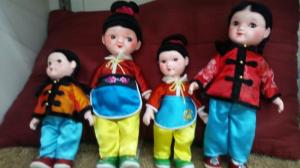 Vintage Oriental Paper Mache, Composition Silk Boy/Girl Dolls, set of 4