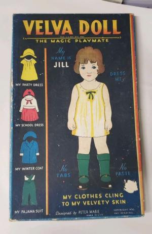 Vintage 1930s Velva Doll Paper Doll with Felt Clothes