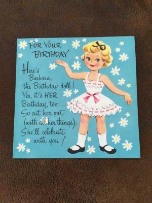 Vtg 1950 Pretty Girl Paper Doll Birthday Greeting Card UNCUT Clothing Name Erase