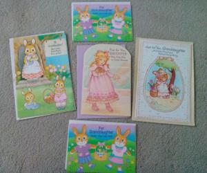 Lot of 5 Vintage UNPUNCHED Paper Doll Punch-Out Easter Greeting Cards W/Envelope