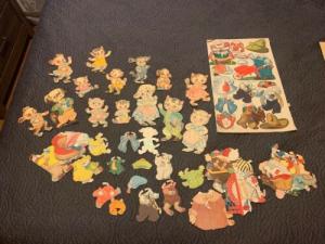 VINTAGE LOT 1940''S 50''S PAPER ANIMAL DOLLS 15 DOGS AND CATS W/ LOTS ACCESSORIES