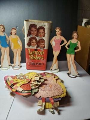 VINTAGE 1960 WHITMAN LENNON SISTERS PAPER DOLL SET IN CAN WITH STANDS CLOTHES