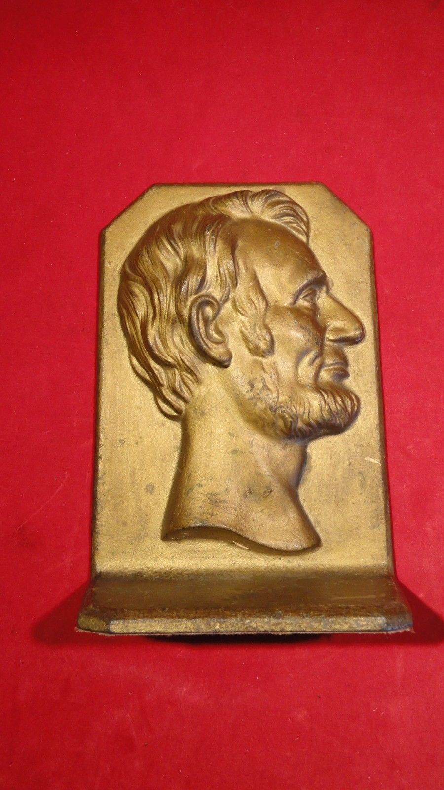 GREAT IRON BOOKEND/DISPLAY PIECE WITH PROFILE OF LINCOLN IN HIGH RELIEF