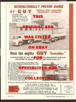 GUY 1961 TRUCK MAGAZINE ADVERTISEMENT     Completed    $0.99