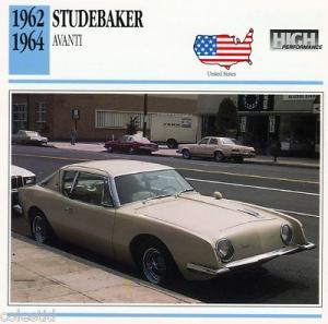 1962-1964 STUDEBAKER AVANTI collector card.     Completed    $0.75