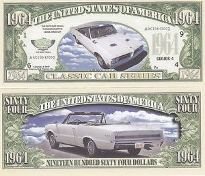 Classic 1964 Pontiac GTO Novelty Money Bill #025     Completed    $0.01