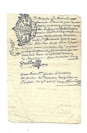 RARE 1708 FRENCH Document w/Tax Stamp 1708     Completed    $9.5