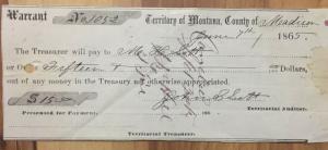 TERRITORY OF MONTANA 1865 Warrant Madison County     Completed    $7.5