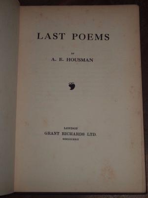1922 LAST POEMS BY A E HOUSMAN - FIRST EDITION!!!     Completed    $1.26