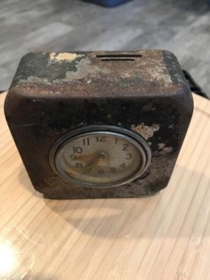 Antique coin bank clock with key 4x4x2     Completed    $3