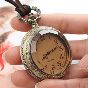 POCKET WATCH CLOCK crystal PENDANT LONG NECKLACE     Completed    $0.95