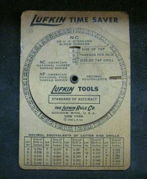 Vintage Lufkin 1935 Time Saver Tap & Drill Chart     Completed    $2.24