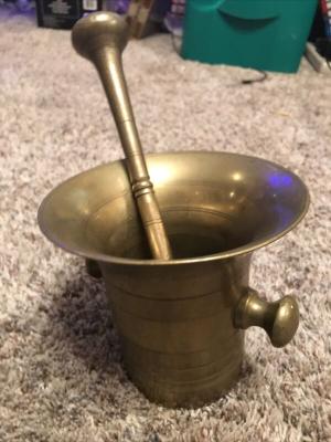 Antique LARGE Brass Mortar & Pestle, 4 3/4" tall     Completed    $9.99
