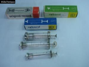 THREE VINTAGE MEDICAL GLASS & BRASS SYRINGES     Completed    $6.52