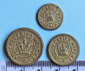 3 brass apothecaries weights, drachms     Completed    $5.28