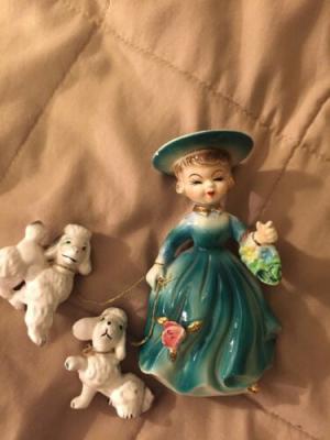 Vintage Lady And Poodles Figurine From Japan     Completed    $3.99