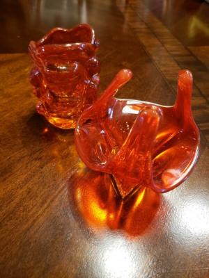 Unique Molded Orange Glass Lot Of Two     Completed    $3.99